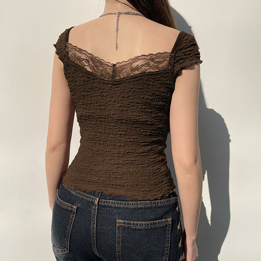 Elegant Vintage Lace Trim Crop Top | Mode Amore Y2K Summer Collection